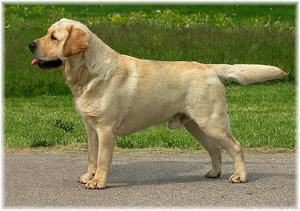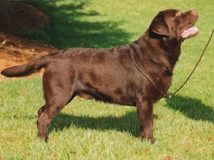 Черный окрас может быть чисто доминантным, тогда все потомство родится черным, независимо от того, какого цвета был второй родитель, или не полностью доминантным, то есть давать все три окраса (даже в одном помете). Черный окрас определяется доминантным аллелем В (Black - черный), расположенным в хромосоме в локусе В. Аллель В гена черного окраса доминантен по отношению к рецессивному аллелю b (brown - коричневый) шоколадного. Лабрадоры, имеющие чисто доминантный ген черного окраса, дают только черных щенков, не имеющих гена желтого окраса. Если же черный окрас имеет не полное доминирование, значит, собака имеет в своем генотипе аллели генов желтого или шоколадного окрасов. То есть если повязать такую собаку с чисто-черной, то все щенки в помете родятся черными, но одна половина из них будет иметь в своем генотипе гены чисто-черного окраса, а другая - станет носителем генов желтого или шоколадного окрасов (то есть произойдет расщепление признака 1:1). Повязав же ее с собакой, имеющей не полностью доминантный черный окрас, могут родиться щенки шоколадного окраса с шоколадной мочкой носа и желтого с черной мочкой носа (или желтого окраса с шоколадной мочкой носа, что наименее вероятно). Учтите, что по внешнему виду собаки нельзя определить, является ли она доминантной черной или нет. Это можно выяснить только после получения от нее потомства. Вы можете знать лишь несколько поколений родственников собаки, которые записаны в родословной, но не всю ее генеалогию. Вы никогда не сможете с уверенностью предсказать, какого окраса будут щенки от вязки двух черных собак, даже если от них уже было получено несколько черных пометов, так как не знаете, содержит ли их генотип аллель ВВ (правда, у одного из производителей она есть наверняка). Один из самых известных привозных из Англии кобелей черного окраса (из семейства питомника Грейс Ламберт) Чемпион Англии, Америки и Канады Сэм оф Блэркорт долгое время служивший моделью для официального стандарта породы, не имел в своем генотипе ни одного гена желтого окраса. Если с ним вязали желтую суку, она давала только черных щенков, но уже носителей генов желтого окраса (благодаря матери), поэтому могли произвести желтых щенков. Чтобы они не дали черных, их следует вязать только с собаками желтого окраса. ![]() Шоколадный окрас лабрадора ретривера Лабрадоры шоколадного окраса наследуют свой окрас с тех пор как их стали скрещивать с ретриверами других пород. Шоколадный - это альтернативная форма черного окраса. То есть все шоколадные собаки несут рецессивные аллели, не дающие проявиться черной пигментации ни на одном участке тела, поэтому невозможно вывести шоколадного лабрадора с черными пятнами. Те же аллели дают у желтых собак коричневую, а не желательную черную пигментацию. При вязке шоколадных лабрадоров между собой могут родиться желтые или шоколадные щенки. Если шоколадную собаку, не несущую желтых генов, повязать с желтой, несущей гены коричневой мочки носа и краев век, то родятся шоколадные щенки с нормальной пигментацией. Но если шоколадная собака несет ген желтого окраса, вероятнее всего, что половина потомства будет желтым с коричневой пигментацией, а половина - шоколадным с нормальной, темной пигментацией краев век и мочки носа. Если повязать шоколадного Лабрадора с желтым, гомозиготным по темной 